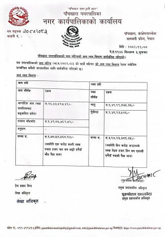 » Panchkhal Municipality has made public the income and expenditure statement for the month of Magh.
