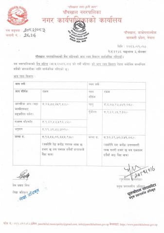 पाँचखाल नगरपालिकाको चैत्र महिनाको आय व्यय विवरण सार्वजनिक गरिएको - २०८३/०१/०७