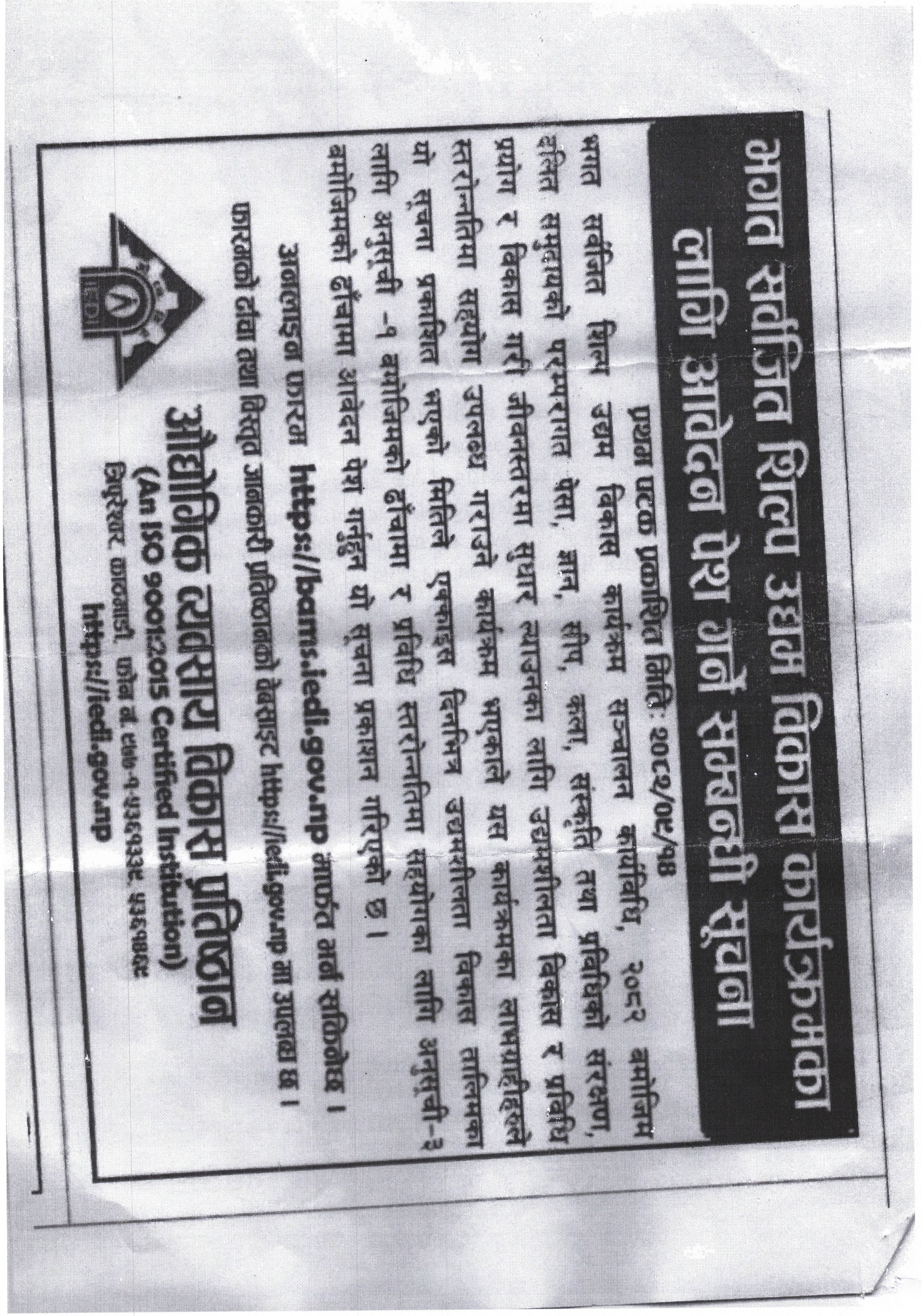 भगत सार्वजनिक शिल्प उद्यम विकास कार्यक्रम” का लागि आवेदन पेश गर्ने सम्बन्धी सूचना