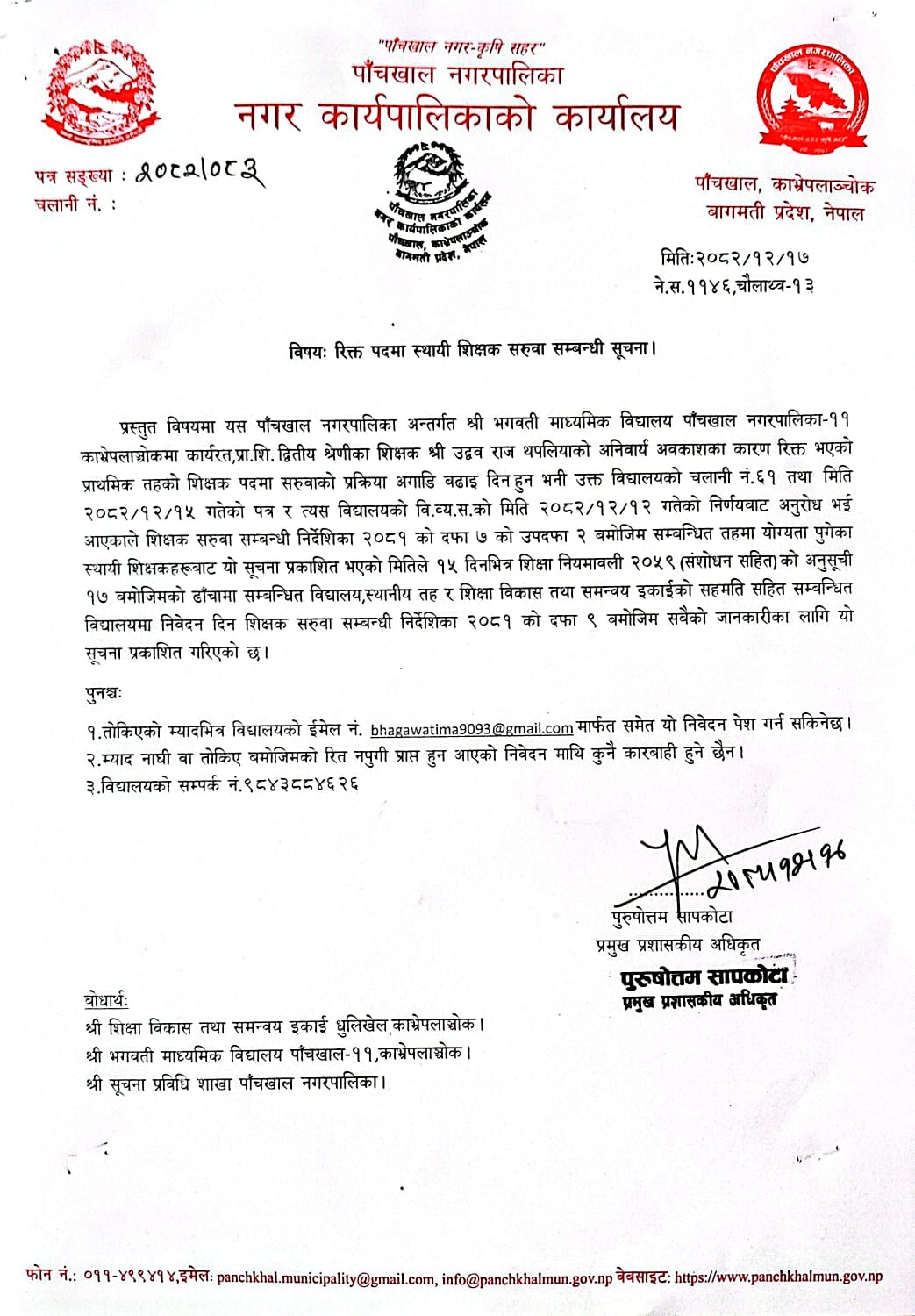» रिक्त पदमा सोही तहका शिक्षक सरुवा सम्बन्धी सूचना