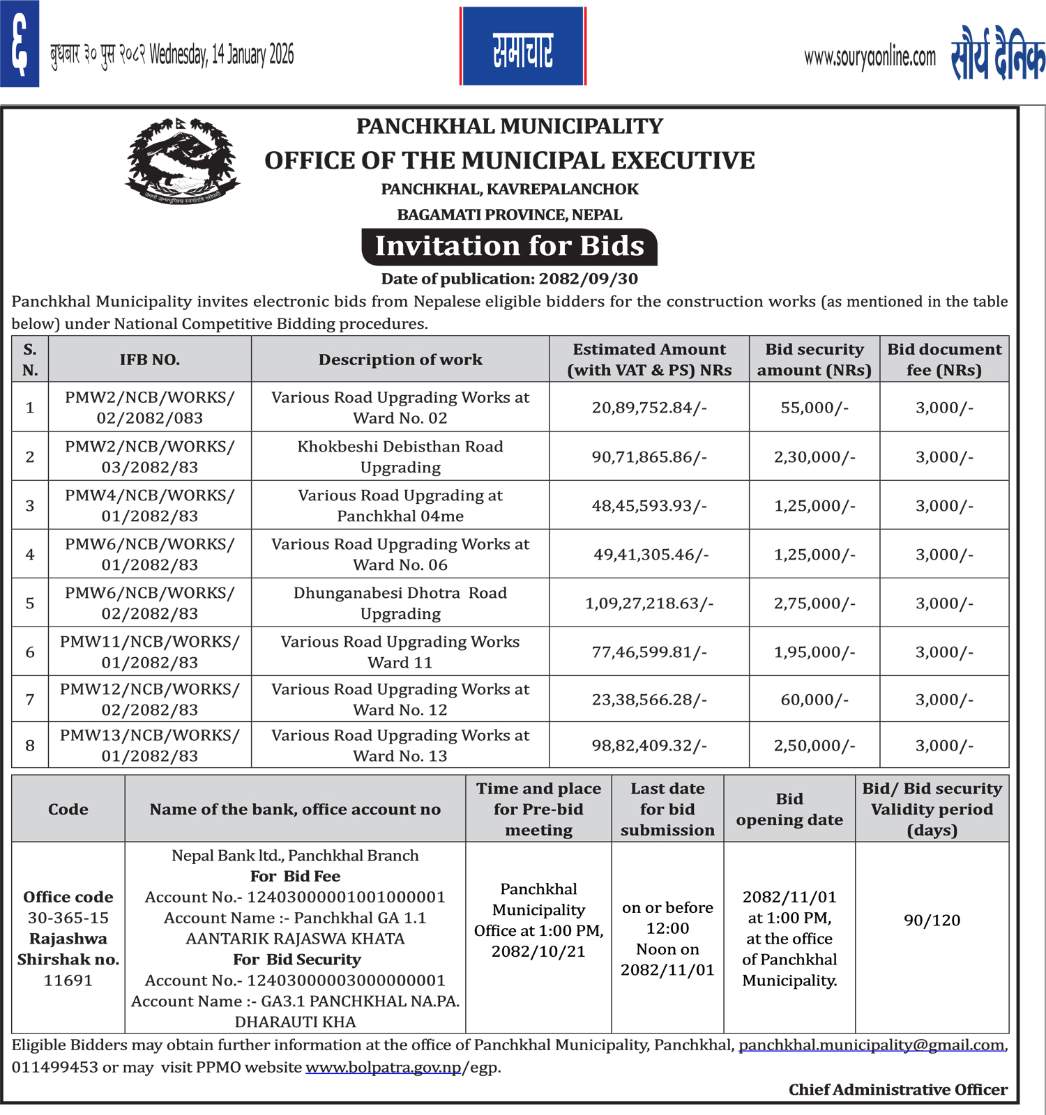 सार्वजनिक खरिद/बोलपत्र सूचना
