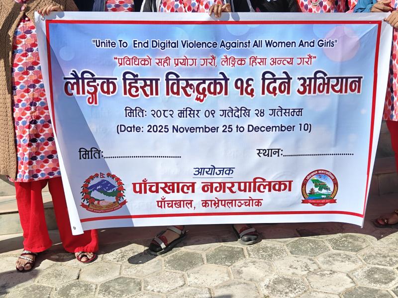 » प्रविधिको सही प्रयोग गरौँ, लैङ्गिक हिंसा अन्त्य गरौँ। मूल नारासहित ‘लैङ्गिक हिंसा विरुद्ध १६ दिने अभियान’ आज मिति २०८२–०८–०९ देखि सुरु भएको छ।