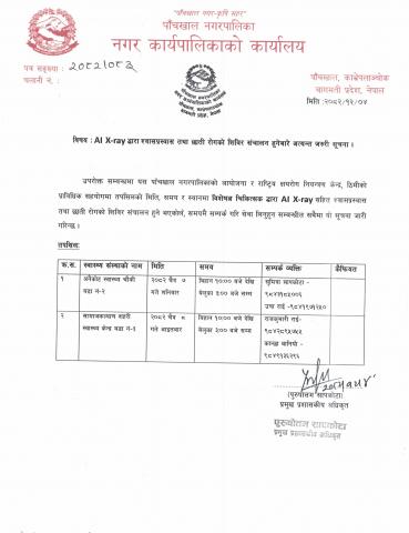 AI X-ray मार्फत श्वासप्रश्वास तथा छाती सम्बन्धी रोगको शिविर सञ्चालन हुनेबारे अत्यन्त जरुरी सूचना।