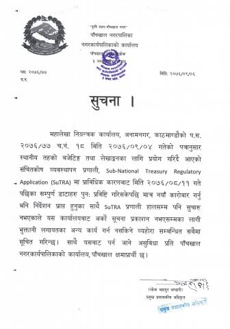 कृषि सहकारीमार्फत साना सिँचाइ कार्यक्रम, पाँचखाल–६ सञ्चालन सम्बन्धी सूचना