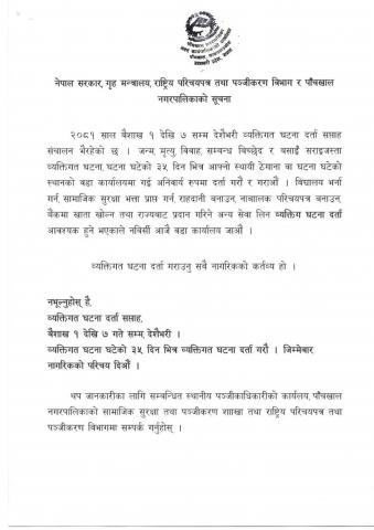प्रस्ताबको आव्हवानको सूचना दोस्रो पटक ।