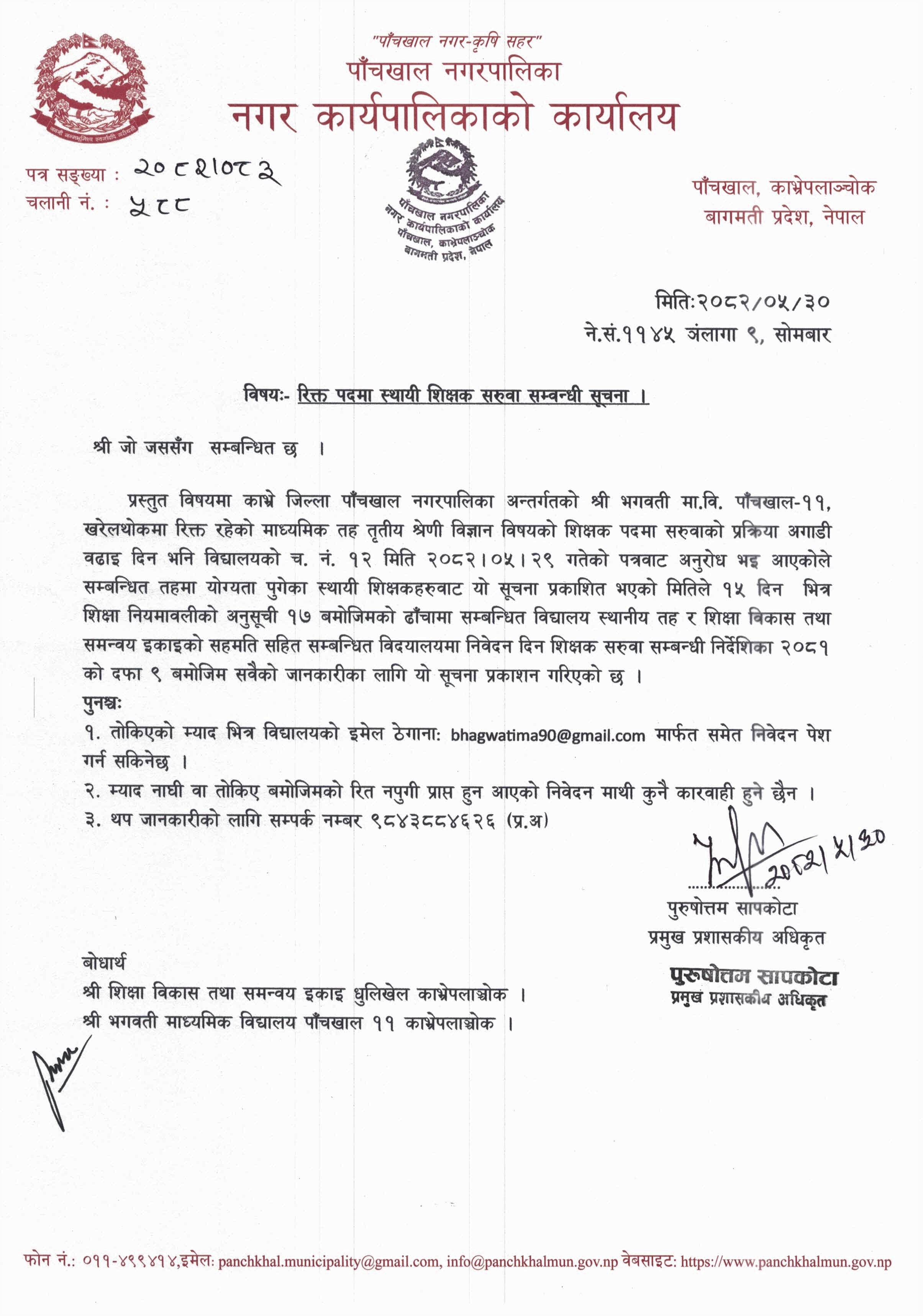 पाँचखाल नगरपालिकाको कात्तिक महिनाको आय व्यय विवरण सार्वजनिक गरिएको।