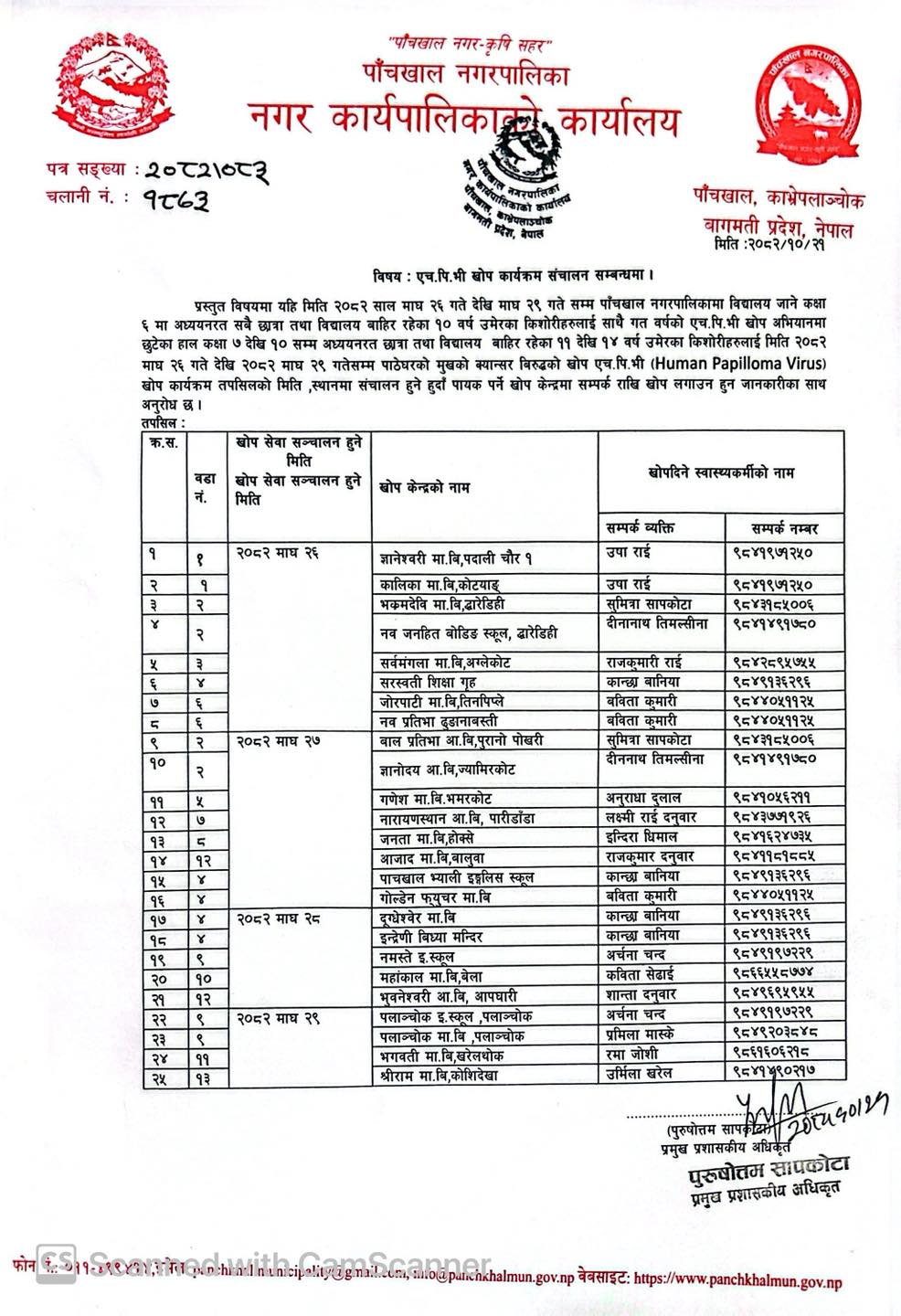 Regarding the Operation of the HPV Vaccination Program – 2082-10-21
