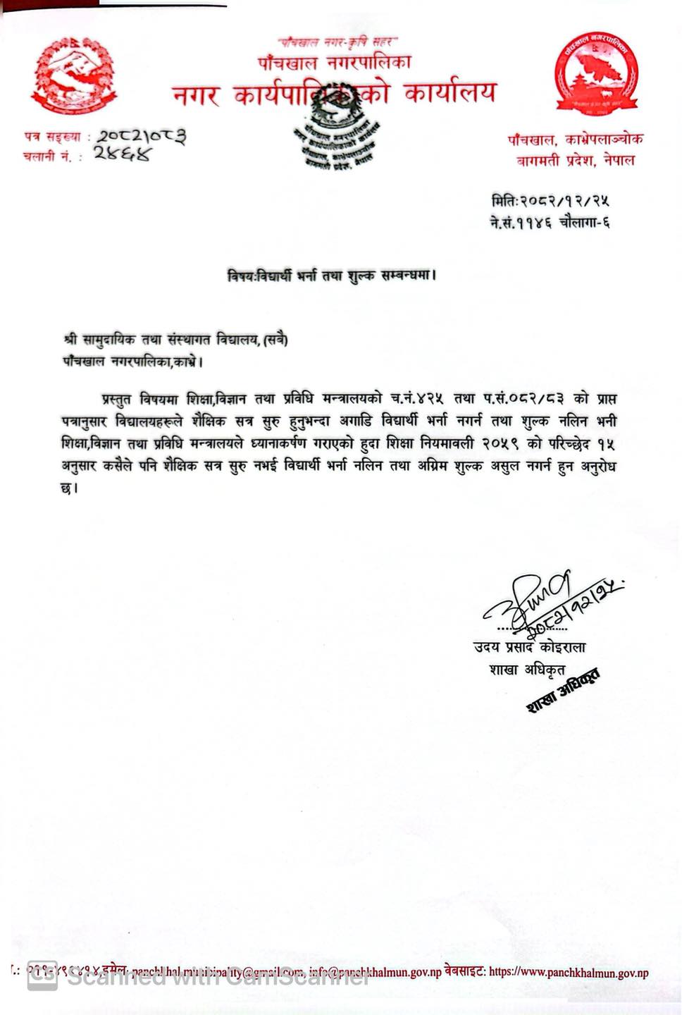 विद्यार्थी भर्ना तथा शुल्क सम्बन्धमा