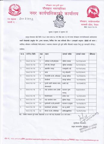 Notice on Public Disclosure of Income and Expenditure Details of Panchkhal Municipality for the Month of Poush