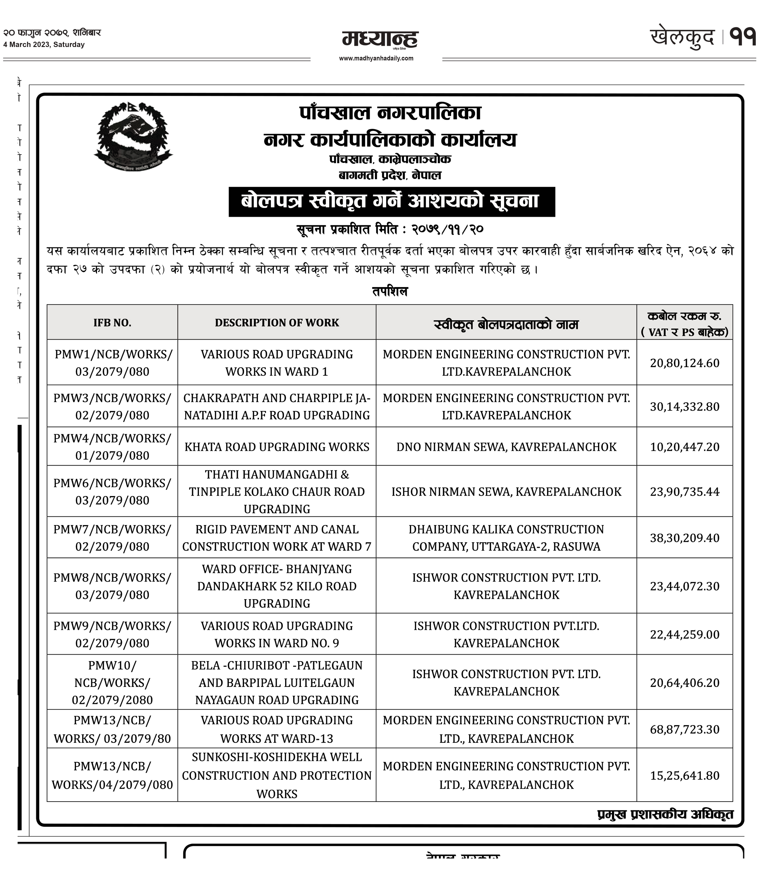 बोलपत्र स्वीकृत गर्ने आसयको सूचना_प्रकाशित मध्यान्ह दैनिक_२०७९_११_२०