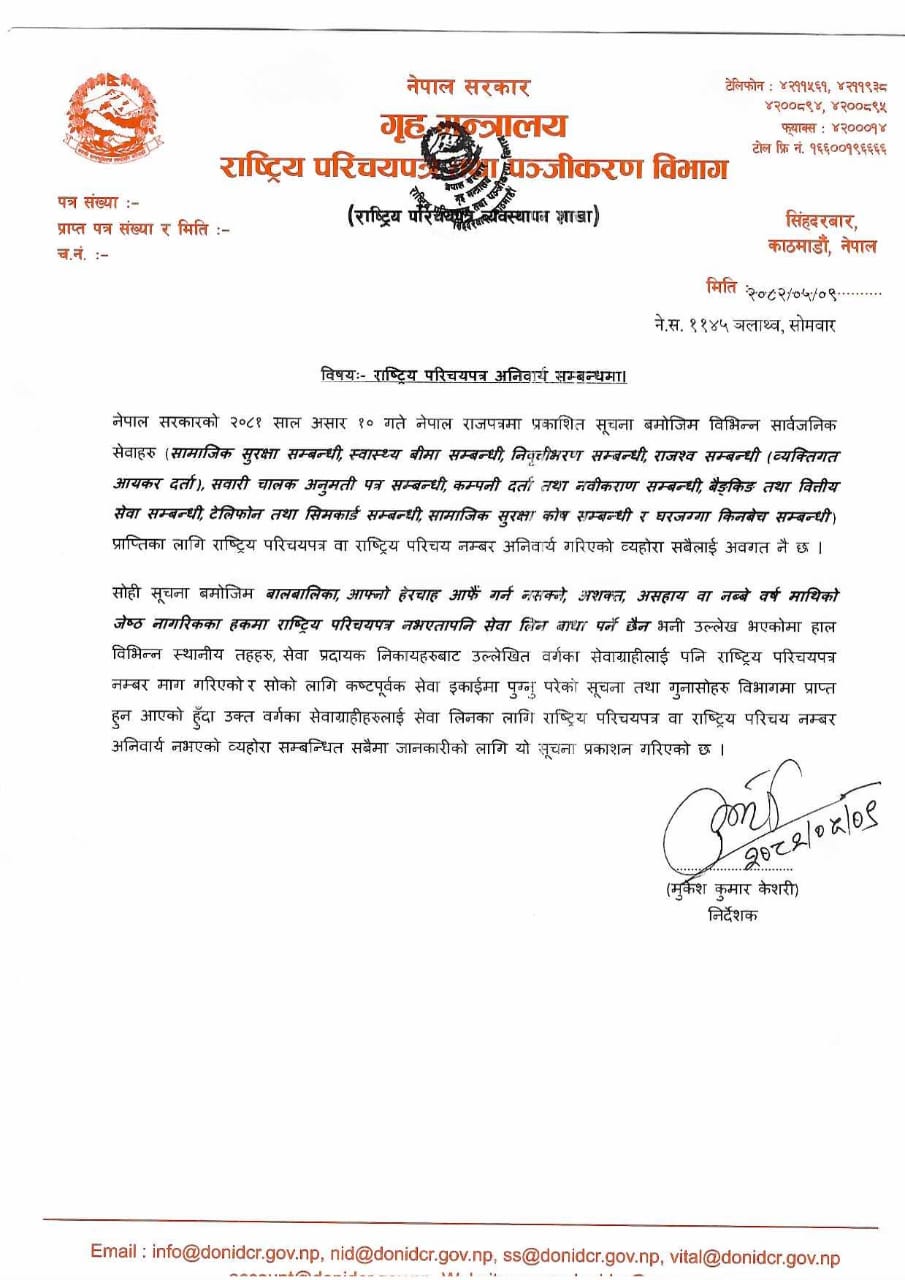 राष्ट्रिय परिचयपत्र अनिवार्य सम्बन्धमा