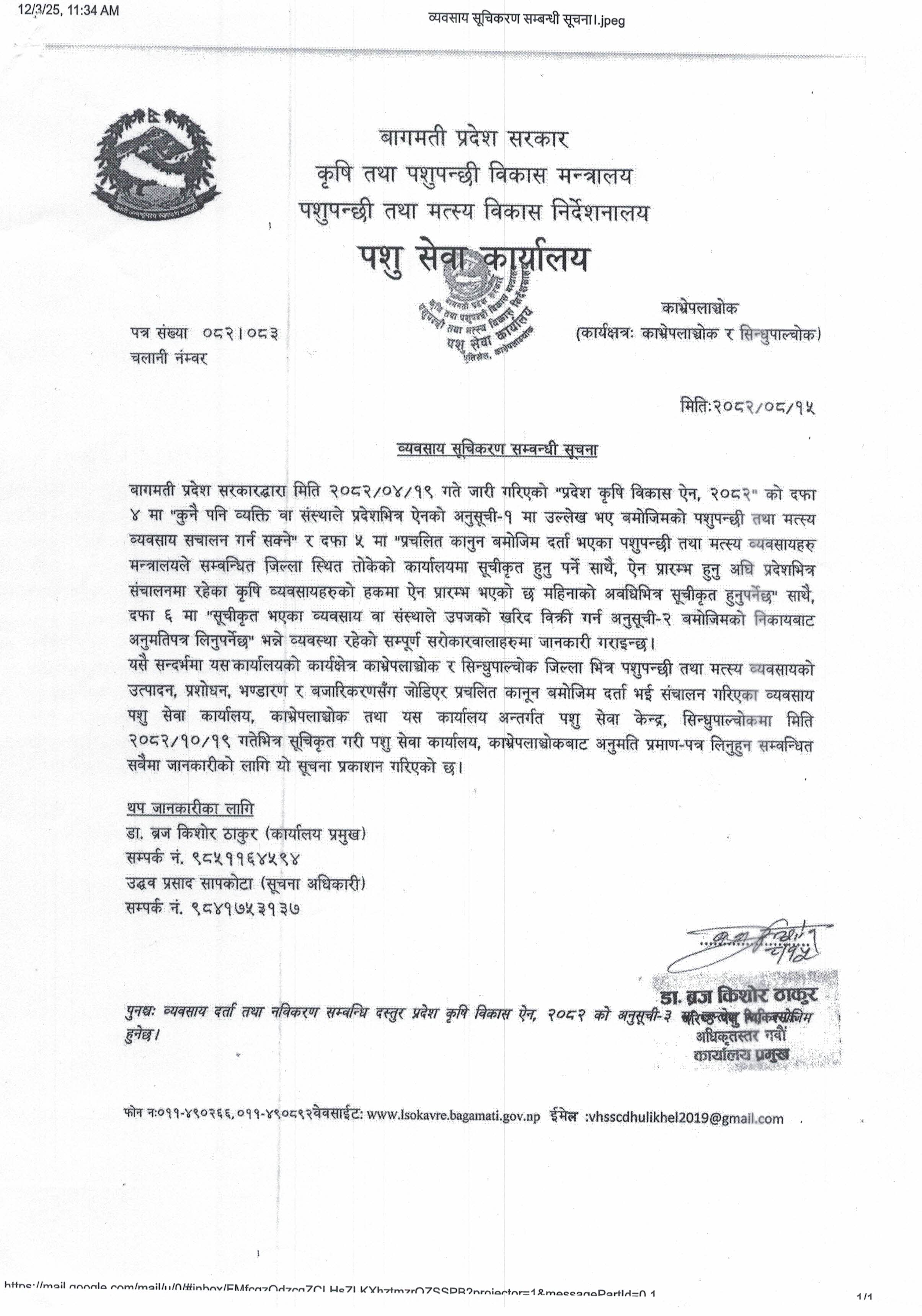 » व्यवसाय सूचिकरण सम्बन्धि सूचना